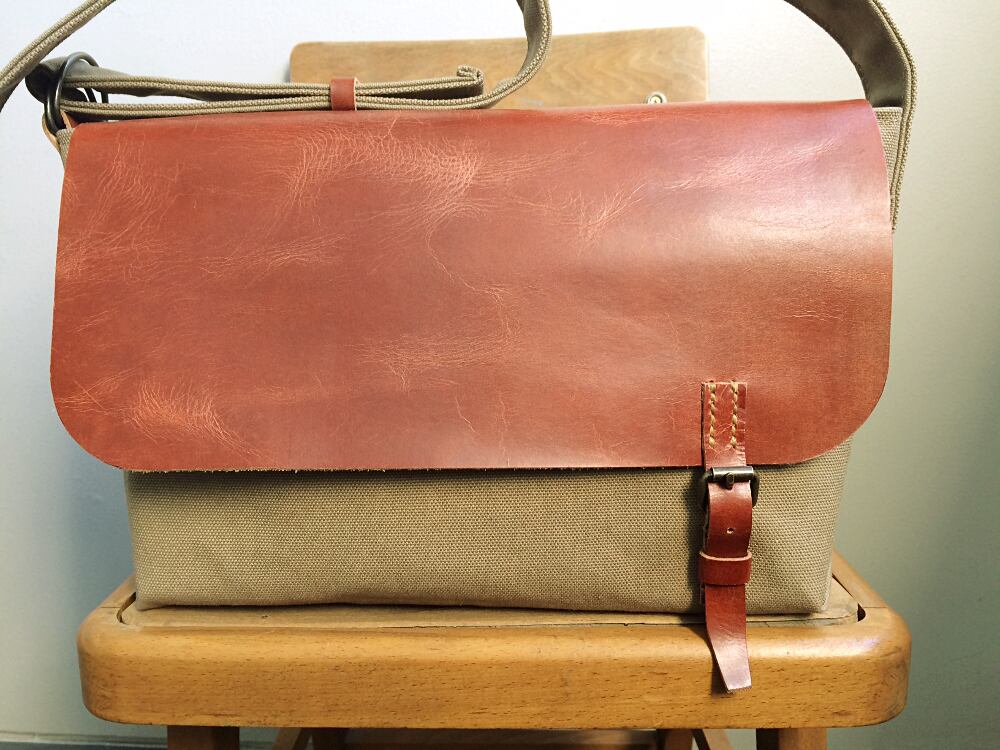 ■ nori. 帆布+革ショルダーバッグ (カーキ+ブラウン)