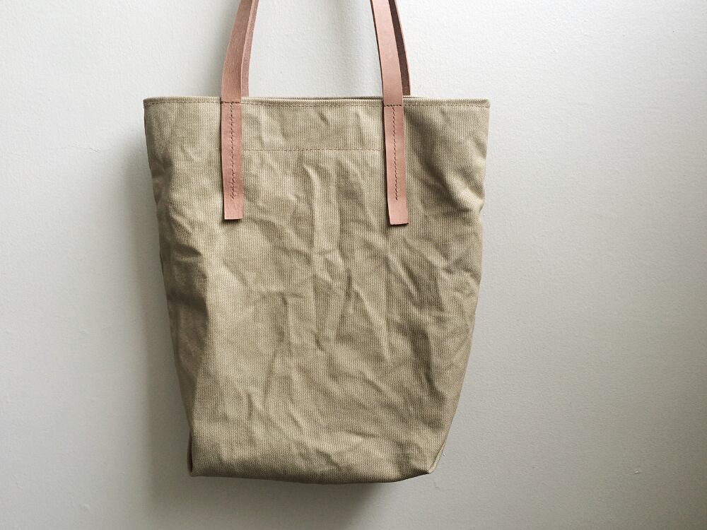 ■ nori. 帆布キャンバス + 革持ち手 トート カーキ