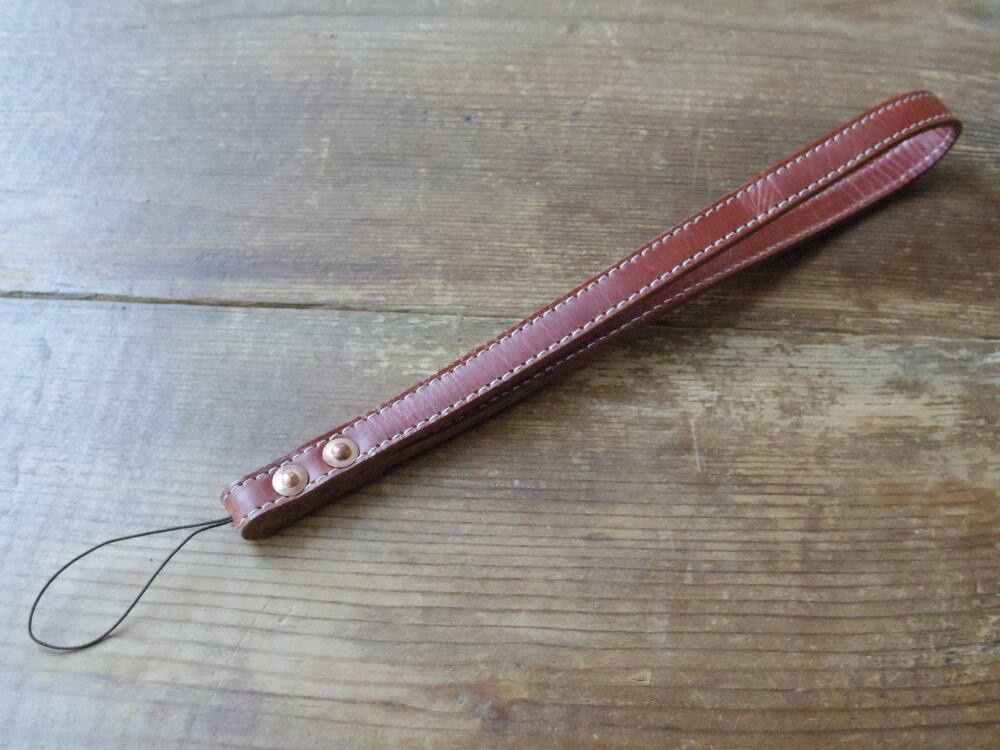 ハンドタイプの革製ストラップつくりました。